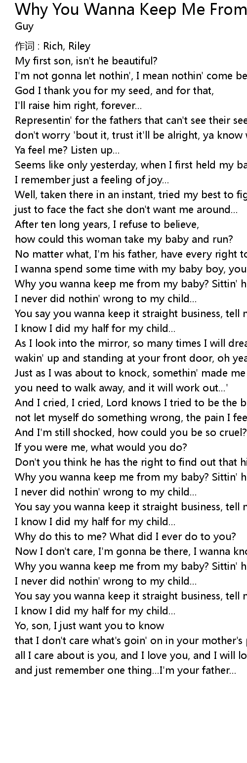 | Why you wanna keep me from my baby? Sittin' here drivin' me crazy, | |