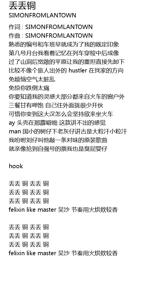 | 作词 : SIMONFROMLANTOWN | |