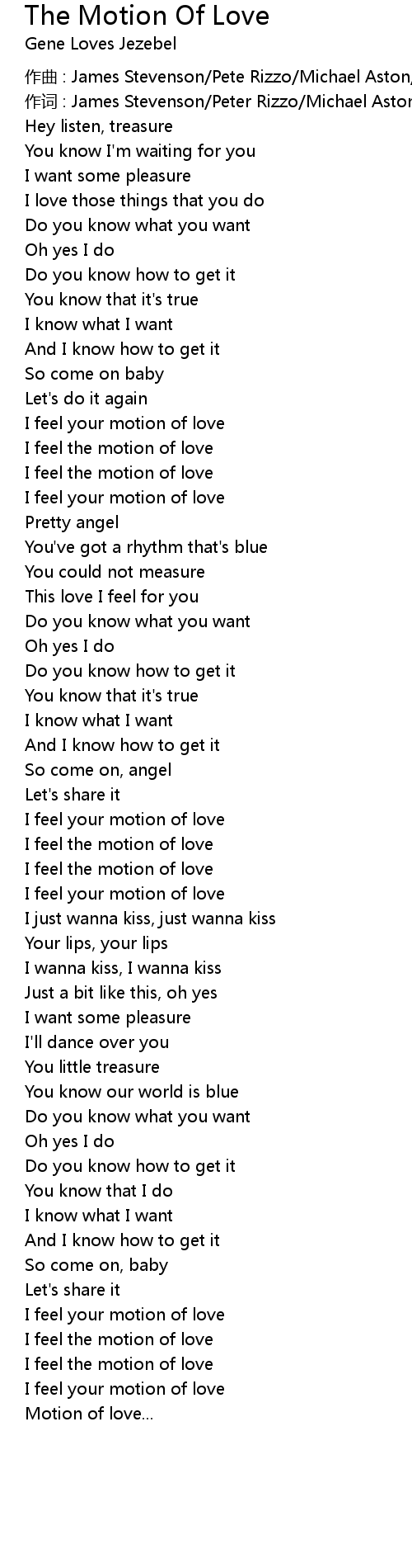 | Song | The Motion Of Love |