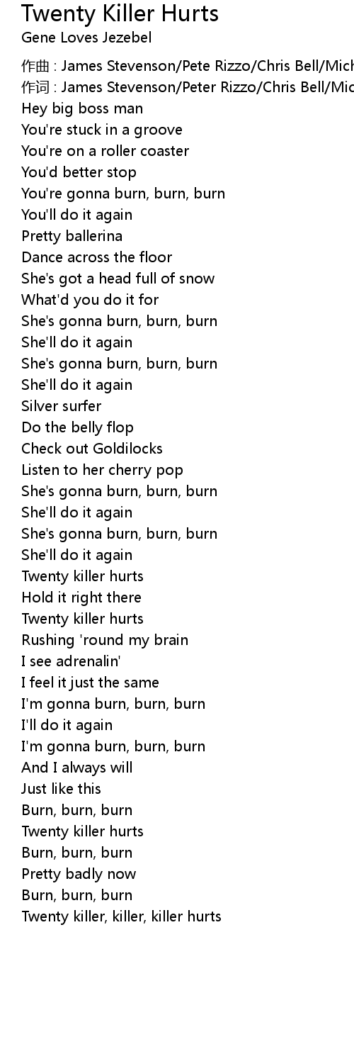 | Twenty killer, killer, killer hurts |