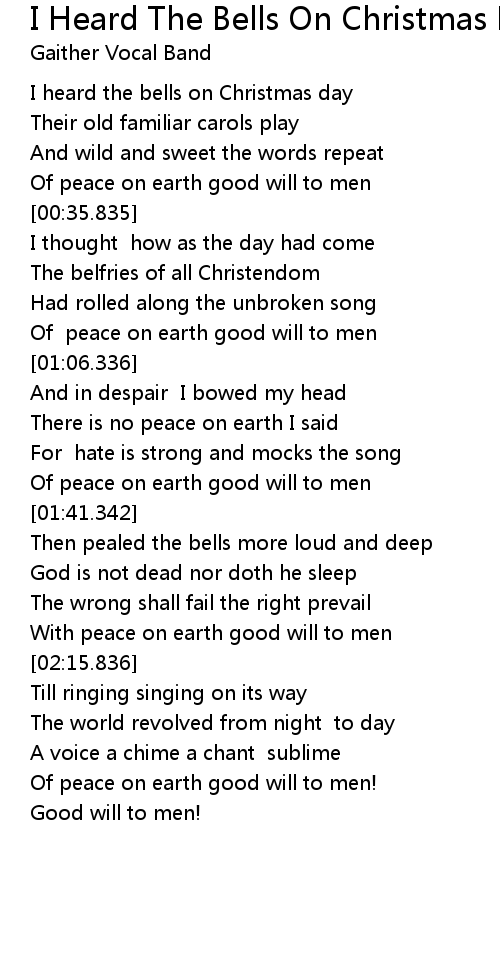 I Heard The Bells On Christmas Day Lyrics