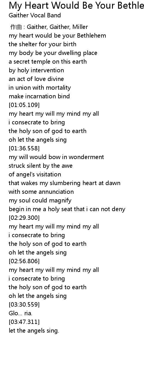 | [00:00.000] | zuò qǔ : Gaither, Gaither, Miller |