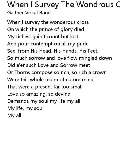 When I Survey The Wondrous Cross (A Cappella Version) Lyrics