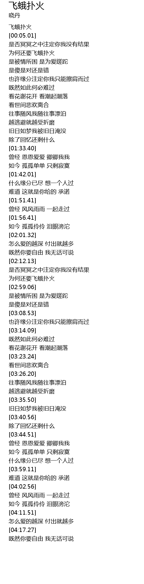 | [00:45.59] | wèi hé hái yào fēi é pū huǒ |