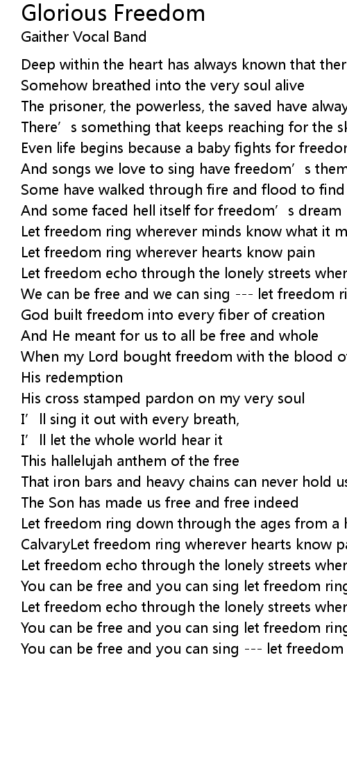 | You can be free and you can sing --- let freedom ring --- let freedom ring |