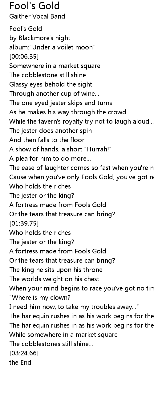 Cause when you've only Fools Gold, you've got nothing more to lose... |