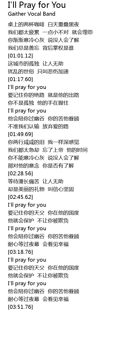 | [03:23.86] | 要记住你的天父 你在他的国度 |