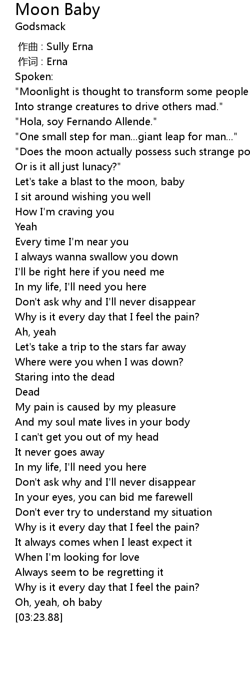 | [00:21.99] | Let's take a blast to the moon, baby |