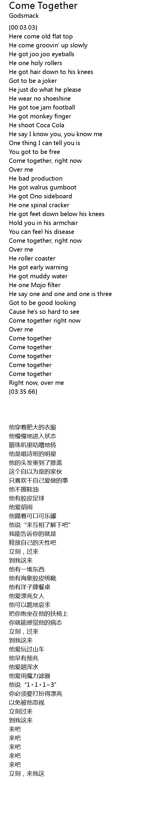 Come together right now |