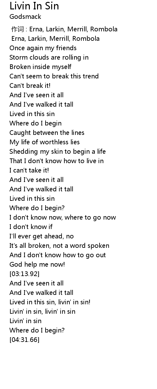 | [04:07.91] | Livin' in sin, livin' in sin |