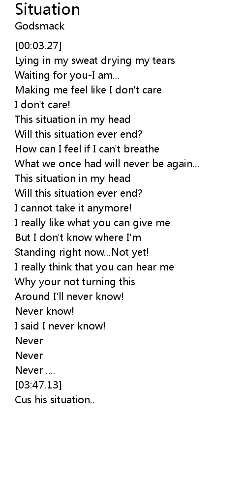| [01:22.96] | Will this situation ever end? |