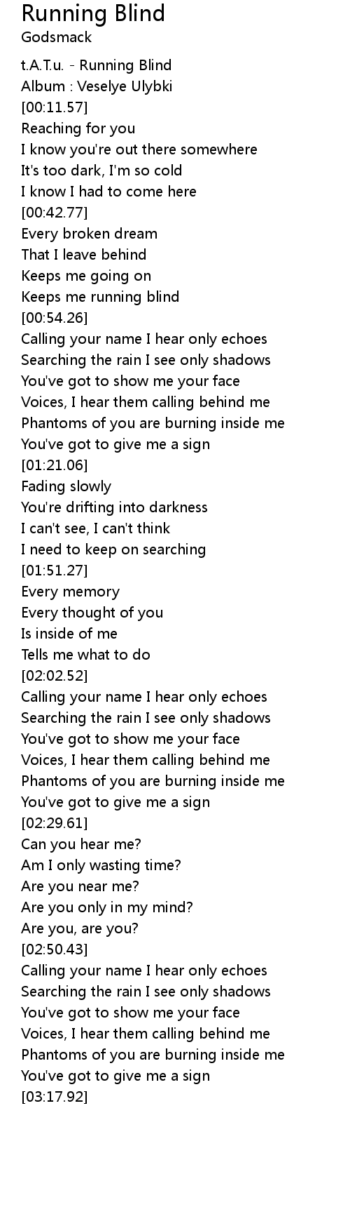 | [00:01.57] | t.A.T.u. - Running Blind |