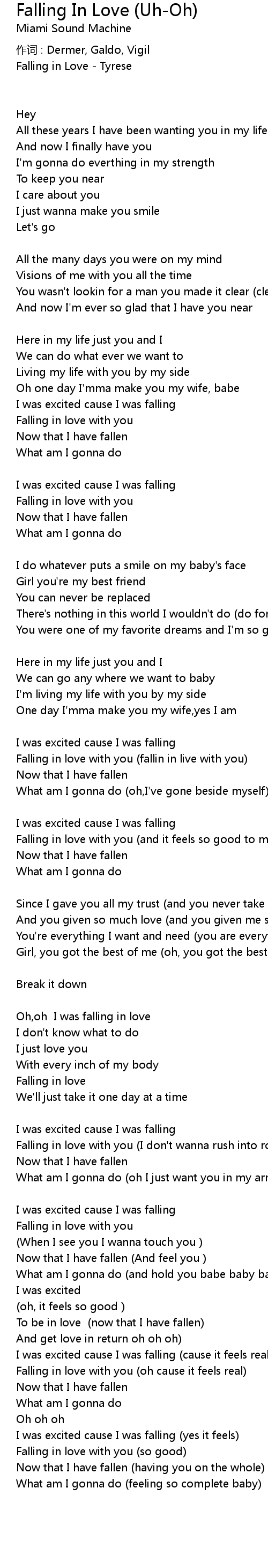 | Song | Falling In Love (Uh-Oh) |