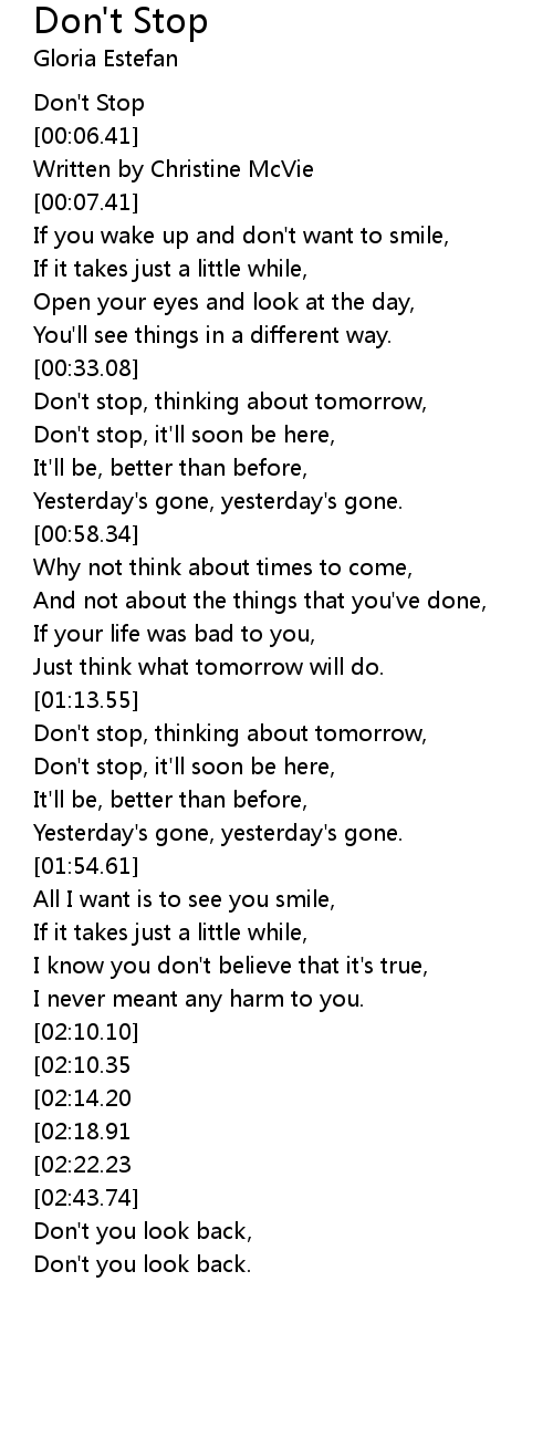 [02:26.67][02:10.35] Don't stop, thinking about tomorrow,