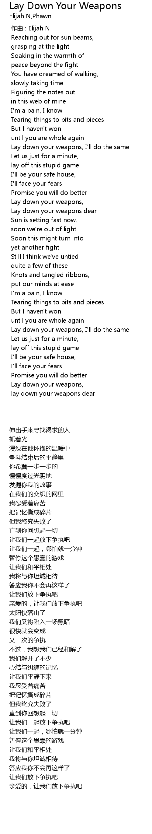 | [02:41.83] | Lay down your weapons, I' ll do the same |