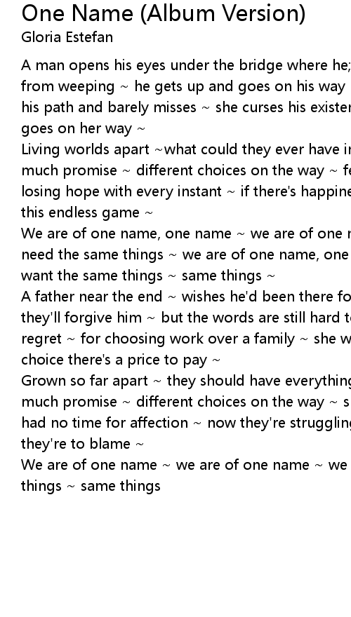 We are of one name, one name ~ we are of one name ~ we want the same things ~ we need the same things ~ we are of one name, one name ~ we are of one name ~ we want the same things ~ same things ~ |