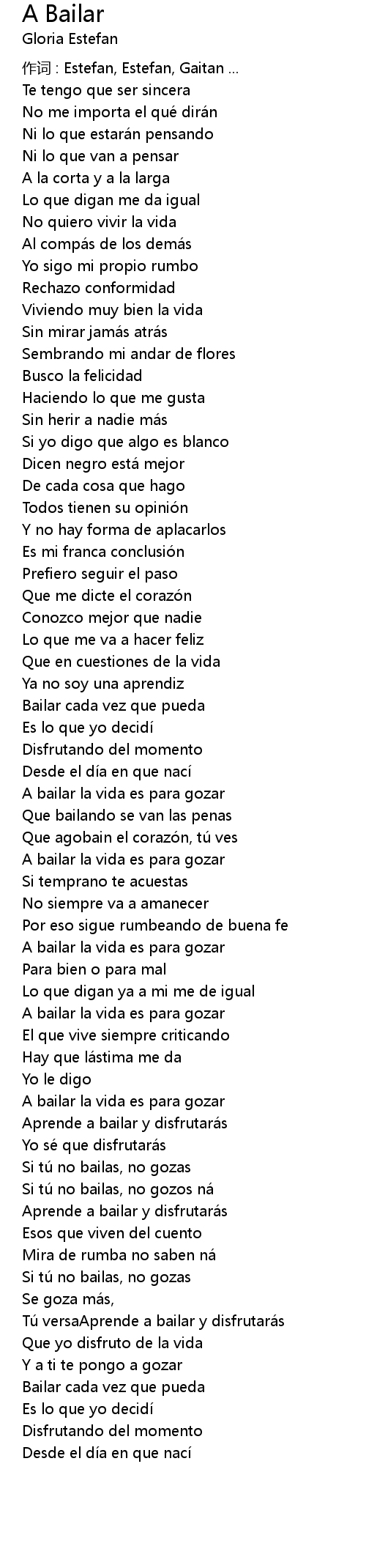 | 作词 : Estefan, Estefan, Gaitan ... | |