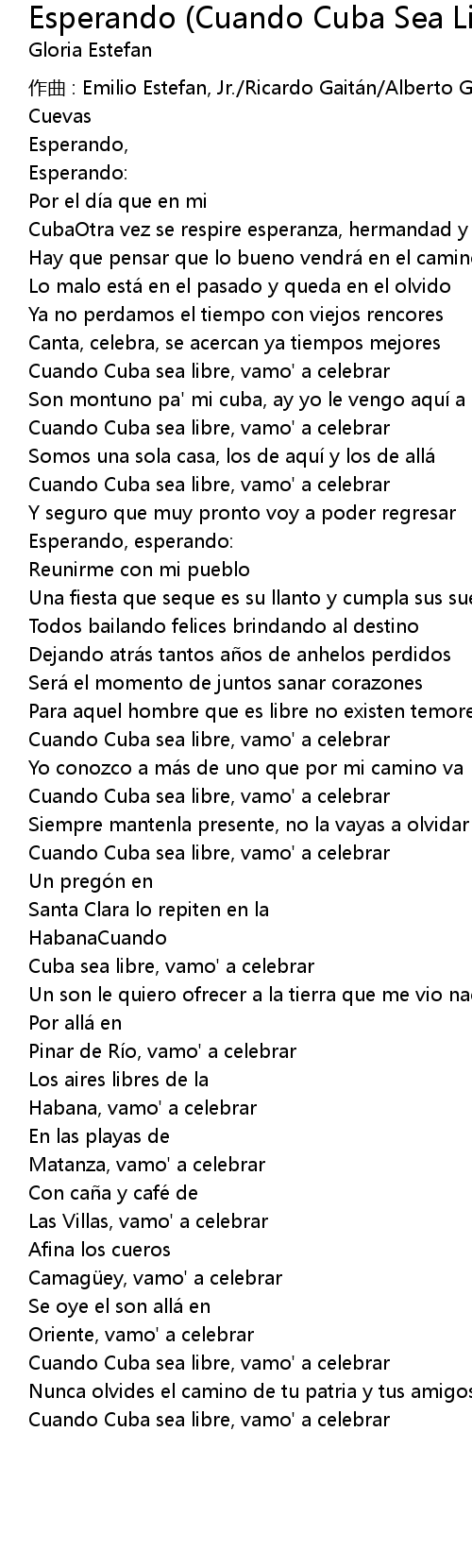 | Song | Esperando (Cuando Cuba Sea Libre) |