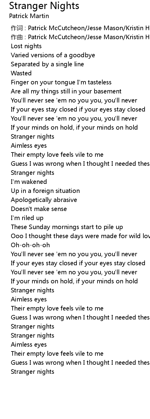 | [00:54.079] | Stranger nights |
