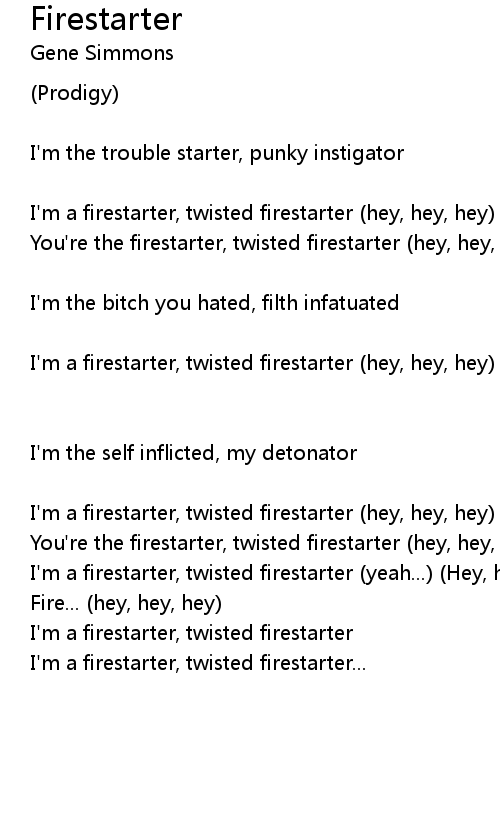 | I' m a firestarter, twisted firestarter hey, hey, hey | |