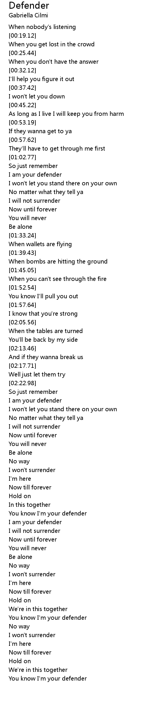 You know I'm your defender |