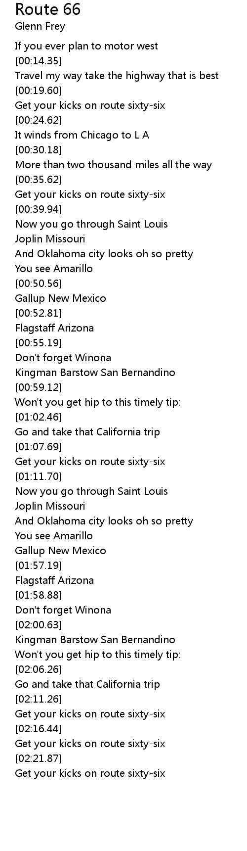 Get your kicks on route sixty-six |