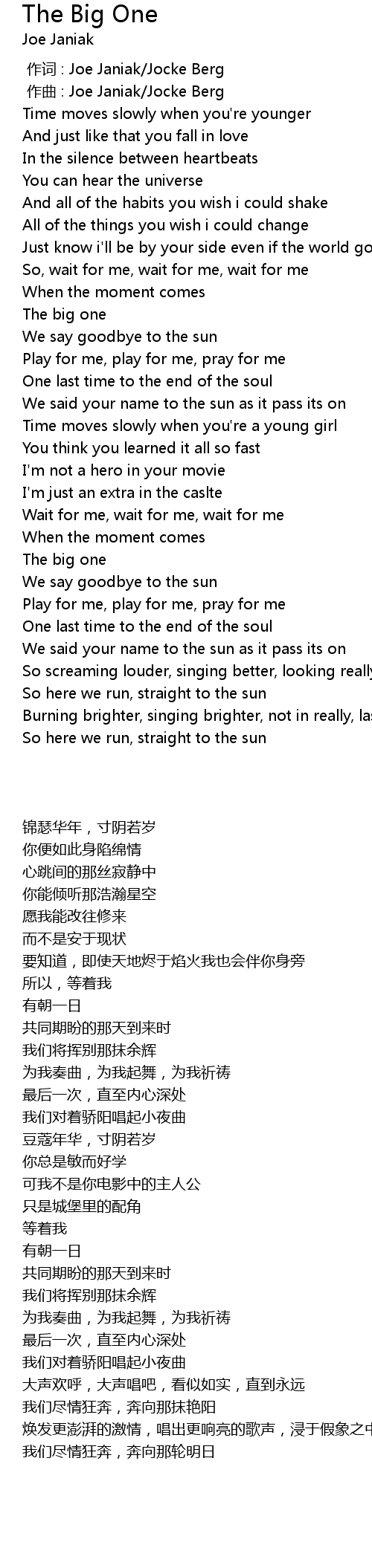 | [01:55.50] | Wait for me, wait for me, wait for me |