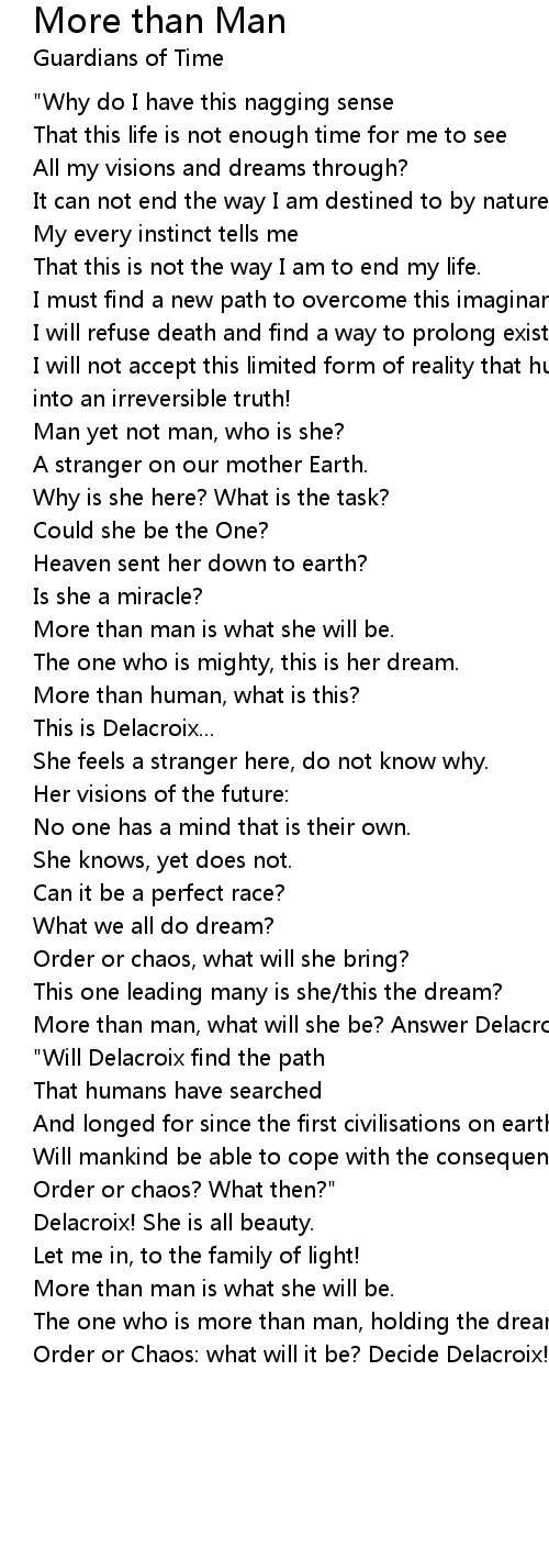 More than man, what will she be? Answer Delacroix... |