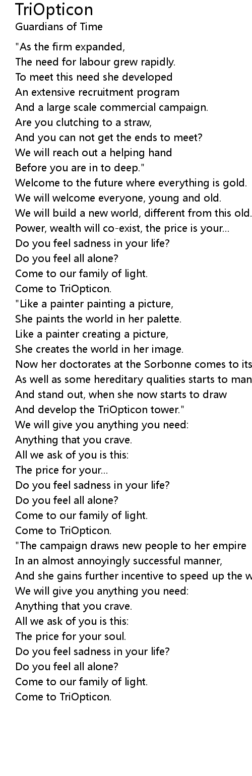 TriOpticon Lyrics
