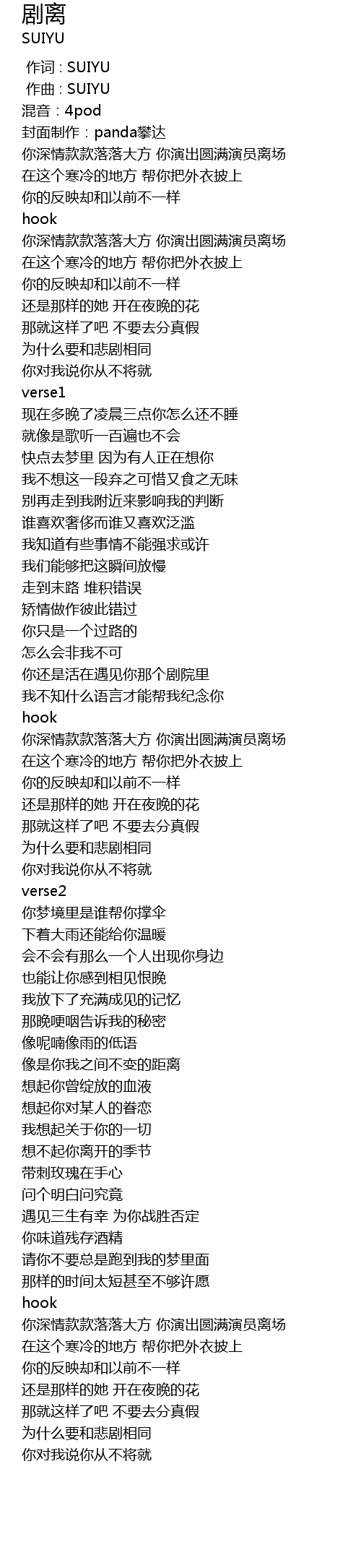 | [00:22.038] | 你深情款款落落大方 你演出圆满演员离场 |