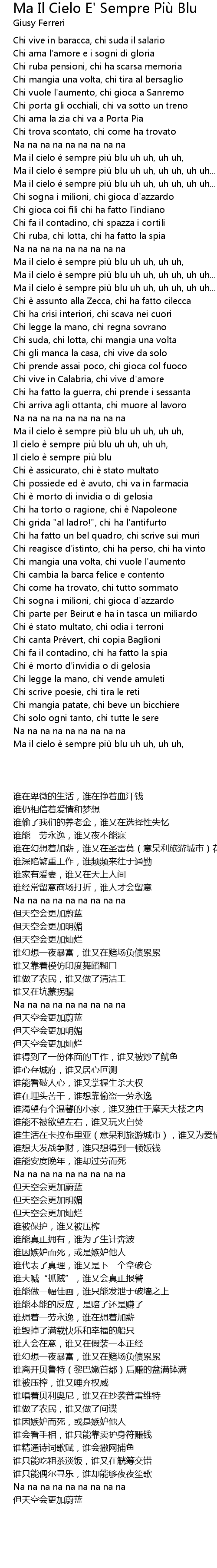 | [01:08.39] | Ma il cielo e sempre piu blu uh uh, uh uh, uh uh... |