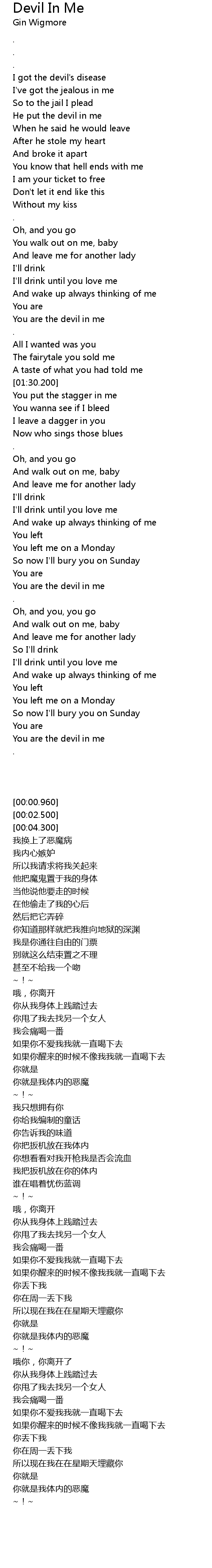| [00:15.599] | I got the devil's disease |