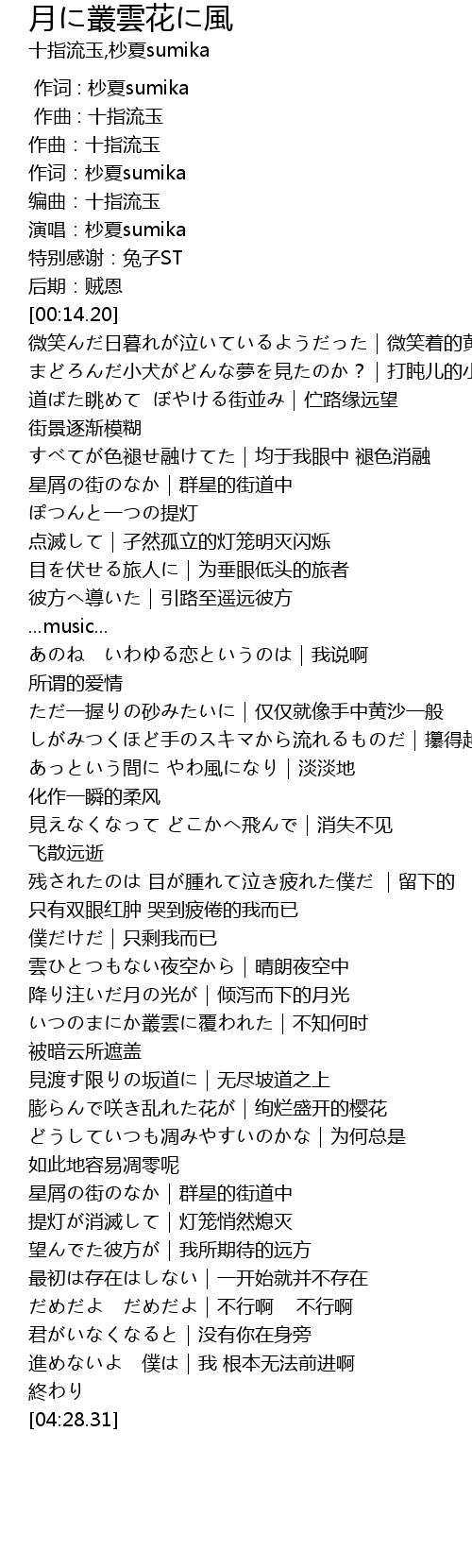 | [03:07.20] | いつのまにか叢雲に覆われた|不知何时 被暗云所遮盖 |
