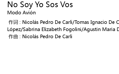 | [00:00.000] | 作词 : Nicolás Pedro De Carli/Tomas Ignacio De Carli/Mayra Morena López/Sabrina Elizabeth Fogolini/Agustin Maria De Carli |