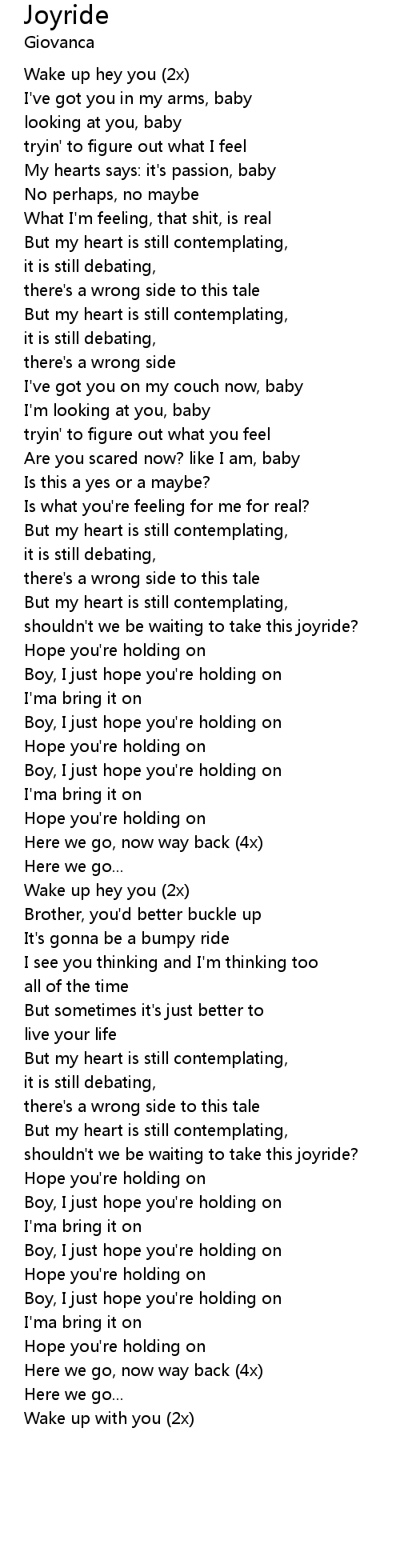 Boy, I just hope you're holding on |
