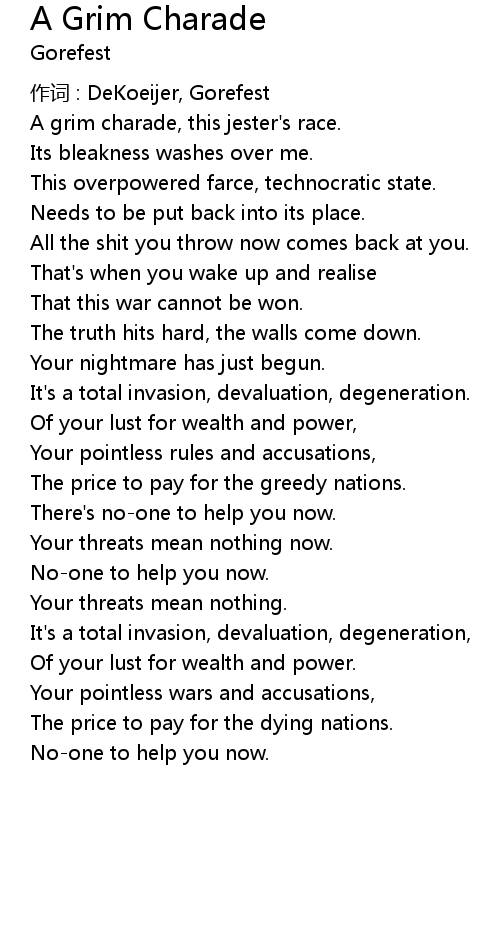 | 作词 : DeKoeijer, Gorefest | |