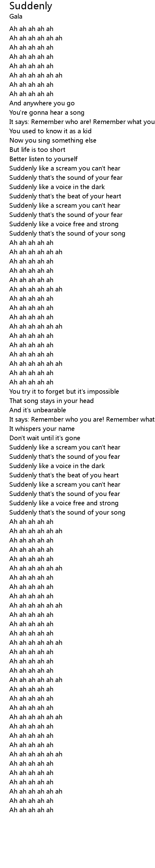 Suddenly Lyrics