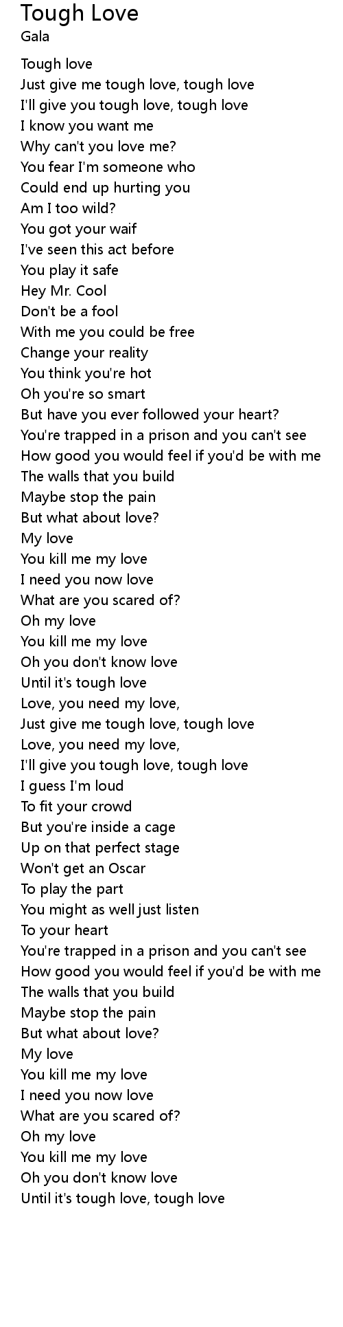 Just give me tough love, tough love |