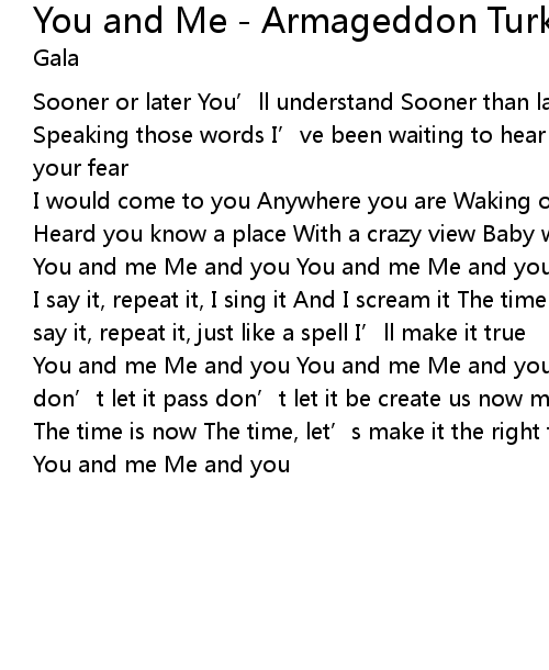 | Song | You and Me - Armageddon Turk remix |