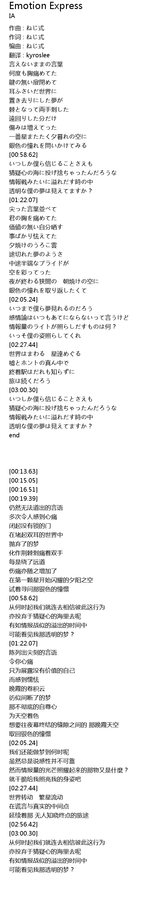 | [00:15.05] | 作词 : ねじ式 |