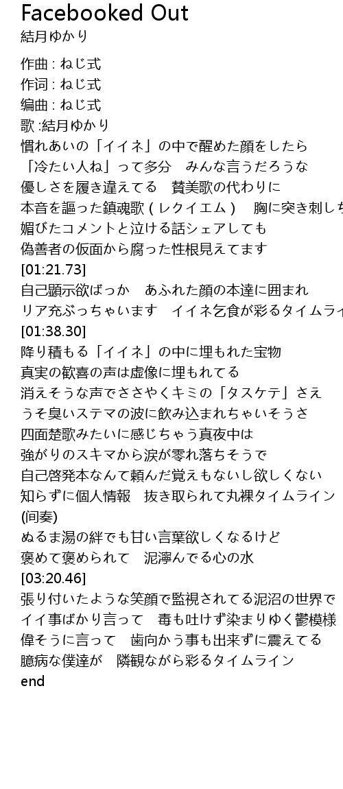 | [01:30.04] | リア充ぶっちゃいます イイネ乞食が彩るタイムライン |