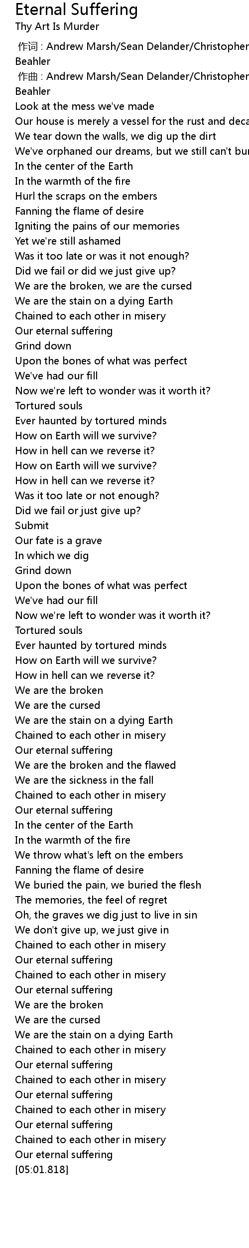 | [04:58.798] | Our eternal suffering |