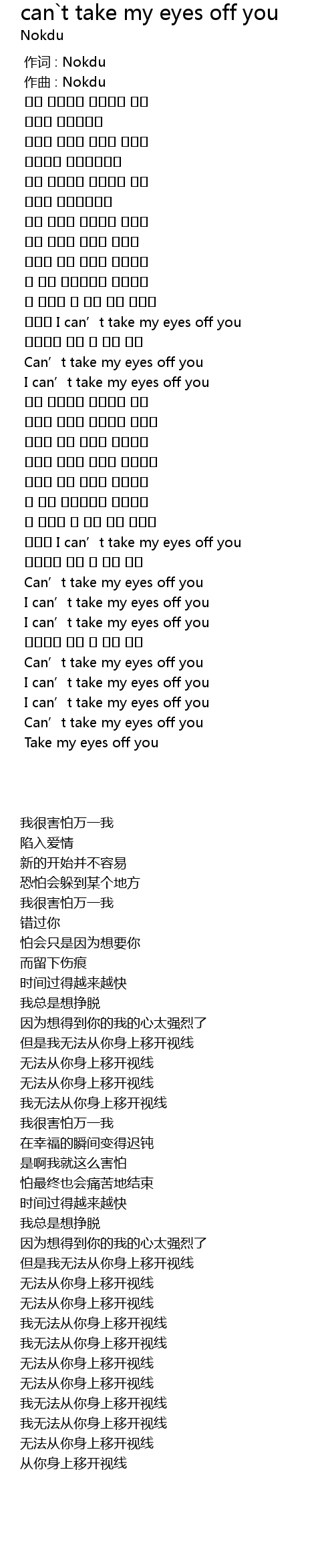 | [02:28.403] | 하지만 I can’t take my eyes off you |