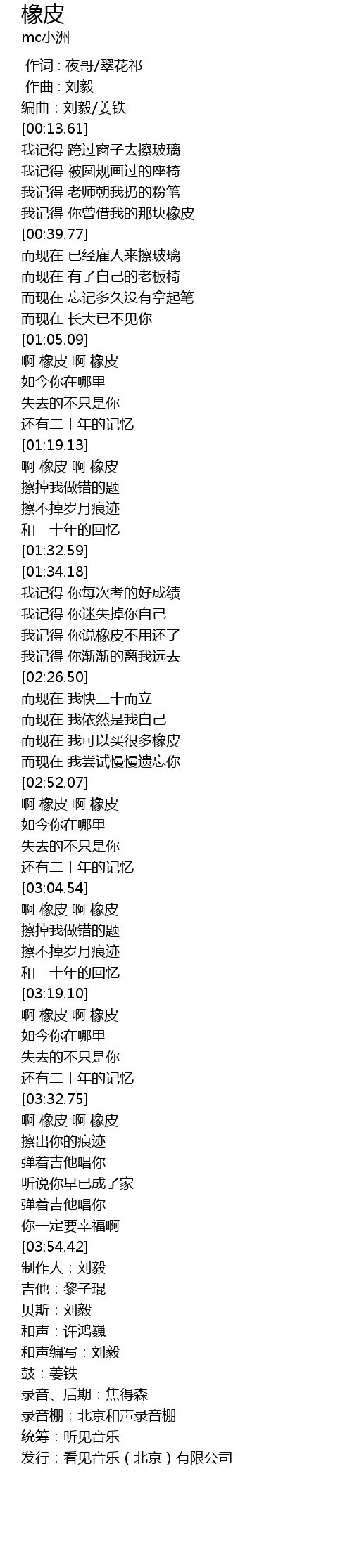 | [03:33.25] | 啊 橡皮 啊 橡皮 |
