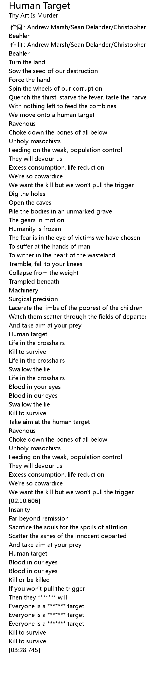 | [03:23.647] | Kill to survive |