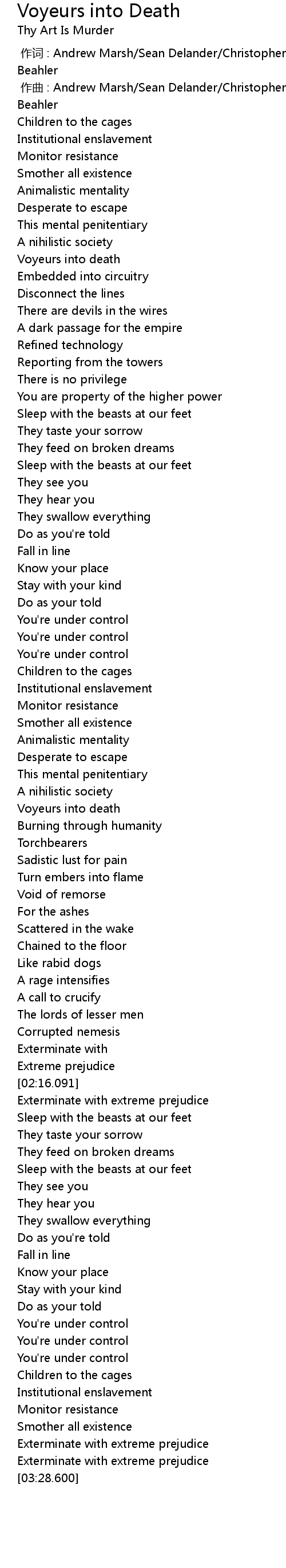 | Song | Voyeurs into Death |