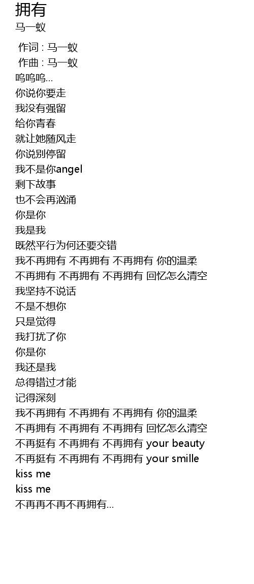 | [00:00.000] | 作词 : 马一蚁 |