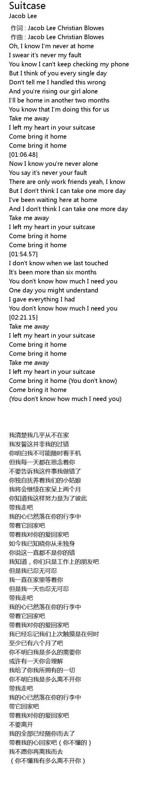 | [00:48.50] | I left my heart in your suitcase |