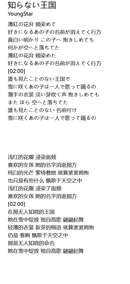 | [02:49] | 雪に咲くあの子は一人で歌って踊るの |