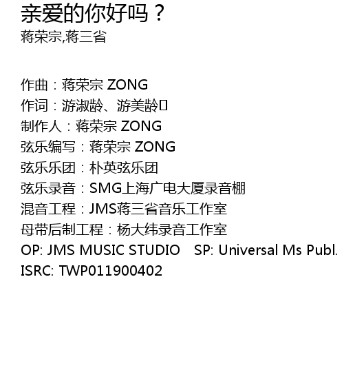 | 混音工程:JMS蒋三省音乐工作室 | |